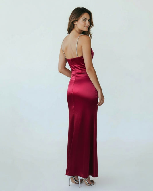 Satin-Abendkleid mit Wasserfall-Ausschnitt - E301