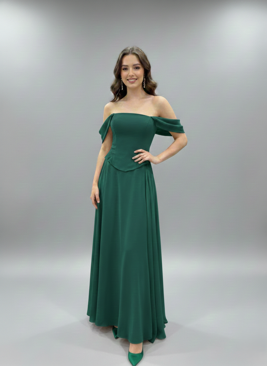 Zarif Omuz Dekolteli Uzun Elbise