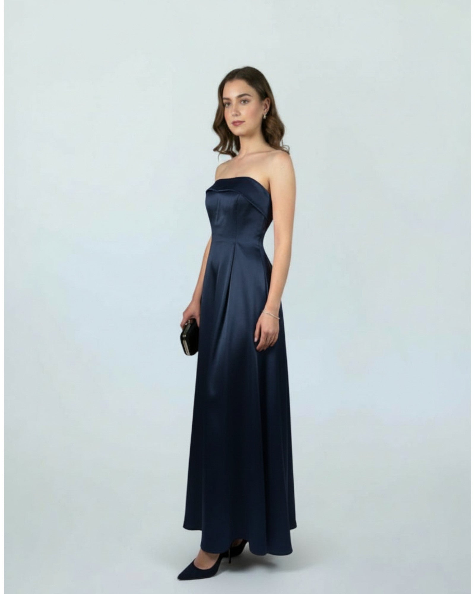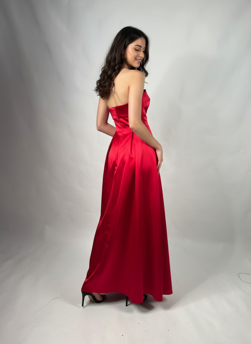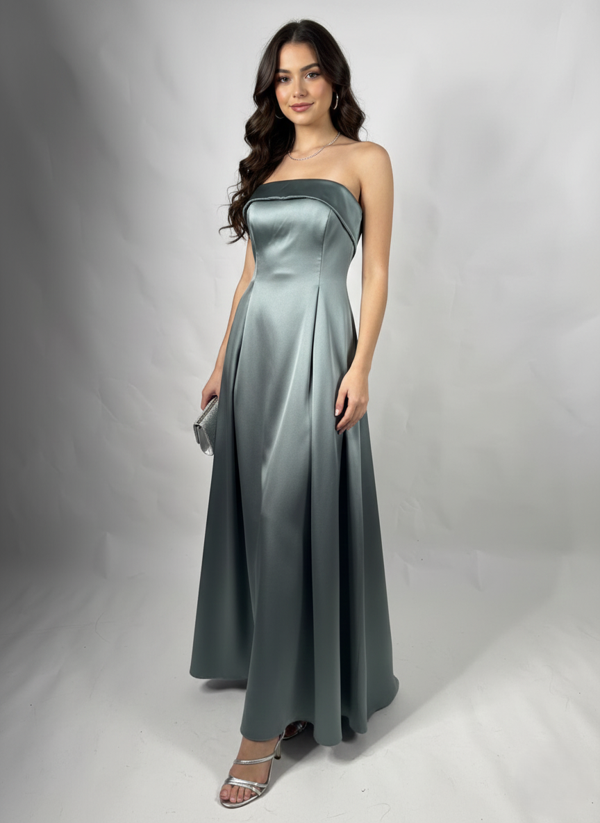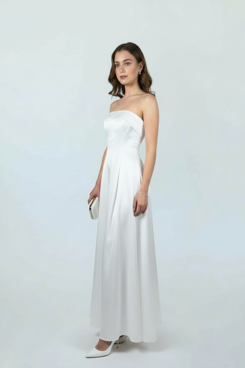Tasarım: Modern straplez kesim ve vücudu saran zarif drapeler.