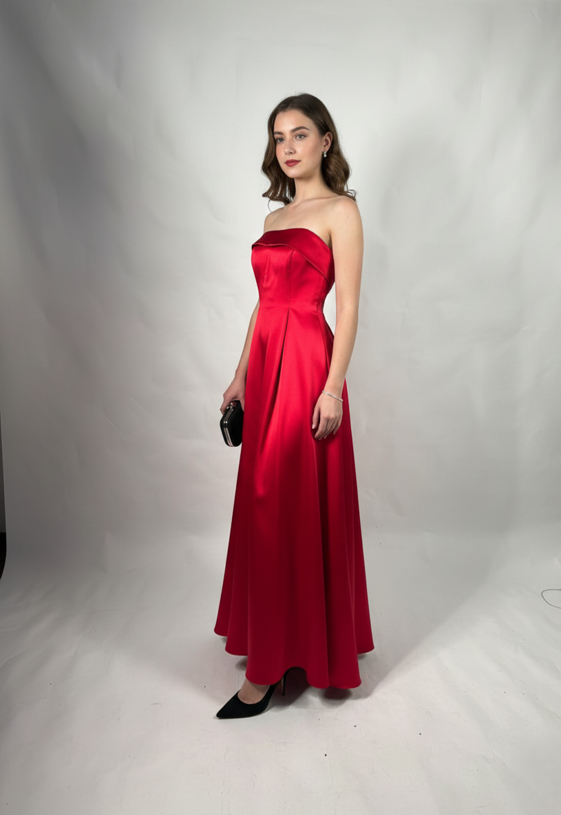 Elegantes trägerloses Design mit figurbetonten Drapierungen. E318