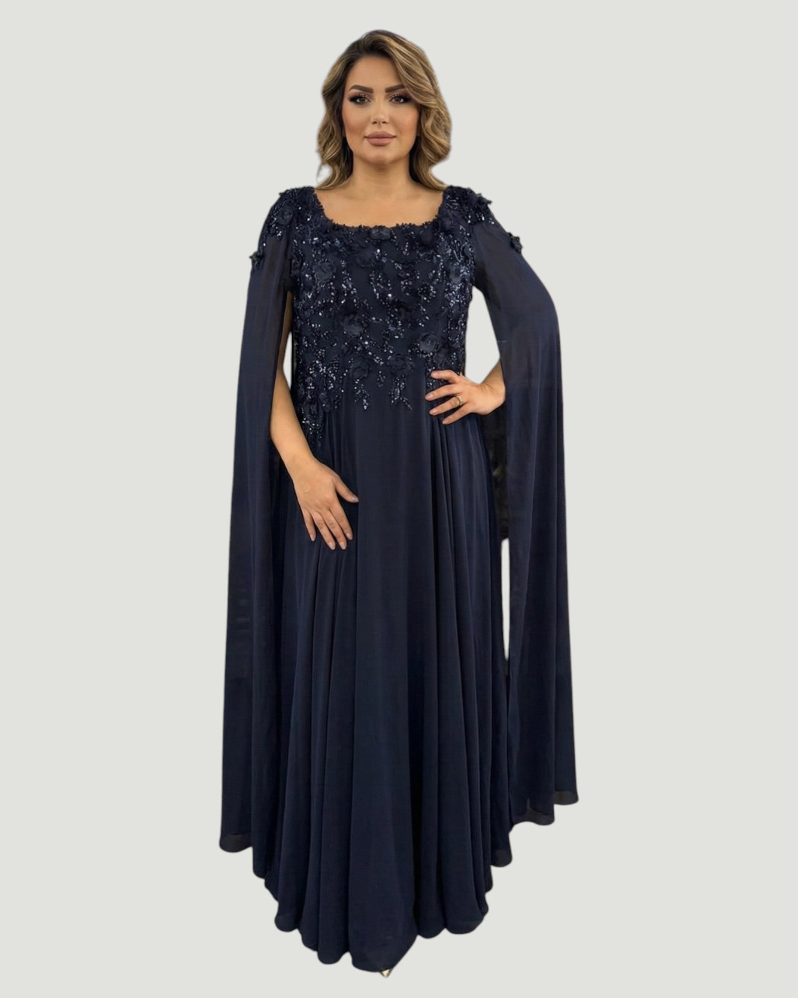 Elegantes Abendkleid mit Pailletten und Cape-Ärmeln E292