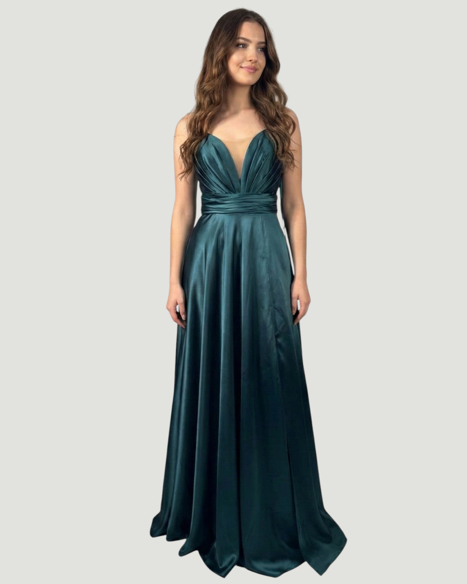Elegantes Satin-Abendkleid mit V-Ausschnitt E293