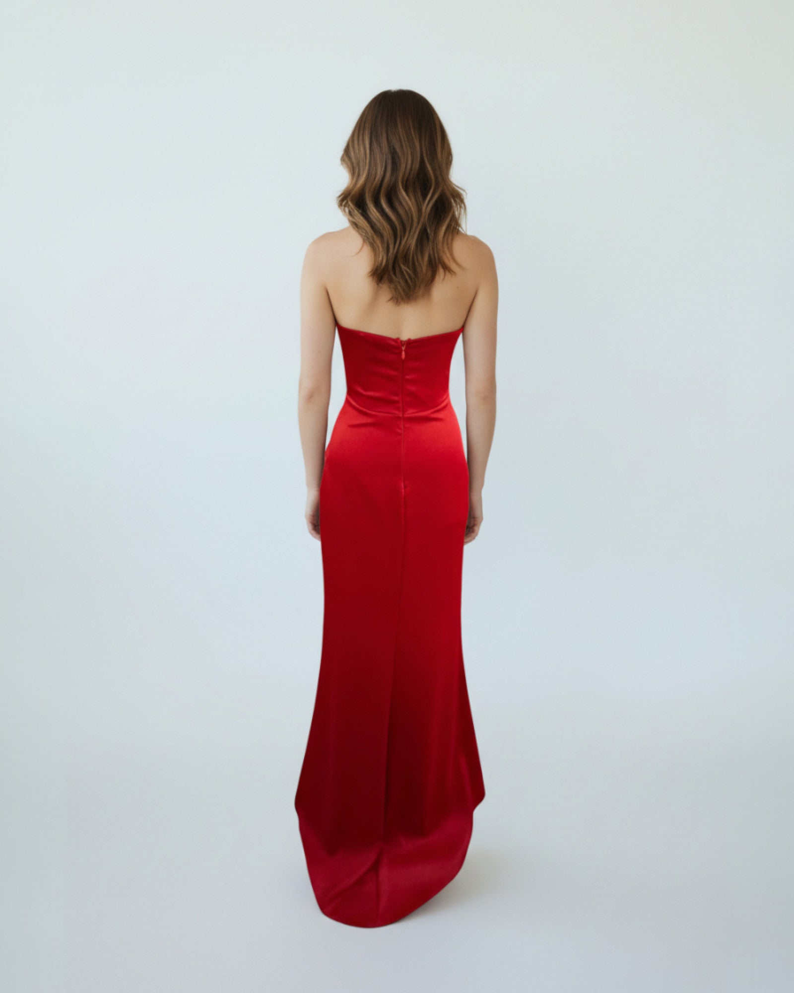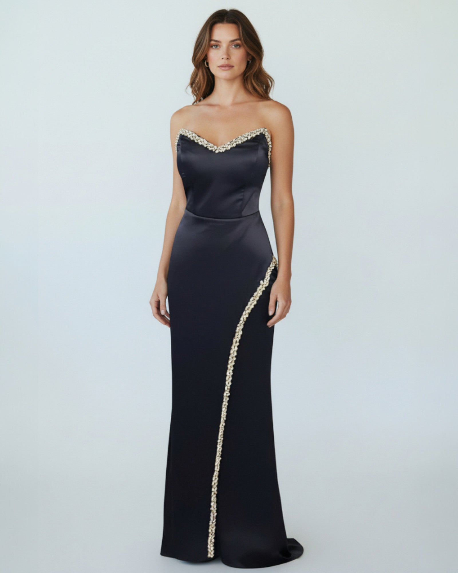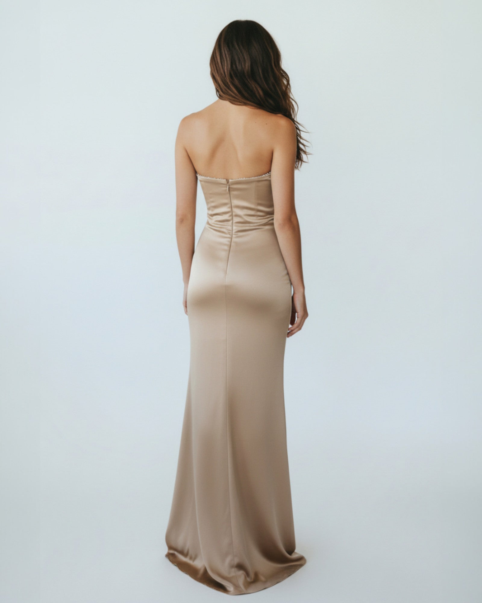 Satin Strapless Gown with Crystal Embellishments