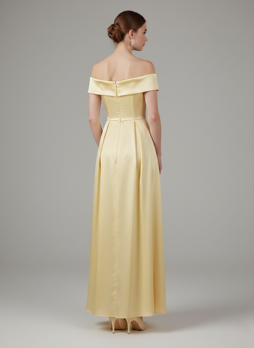 Off-Shoulder Long Satin Evening Dress